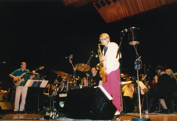 Philip Laughlin (bass), Simon Pearson (Drums) and Jimi Tenor at the Barbican rehearsals. Photo: Chris Gurney