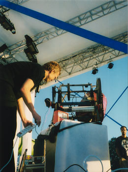 Matti Knaapi powering up Sirkka, the mechanical drum machine.